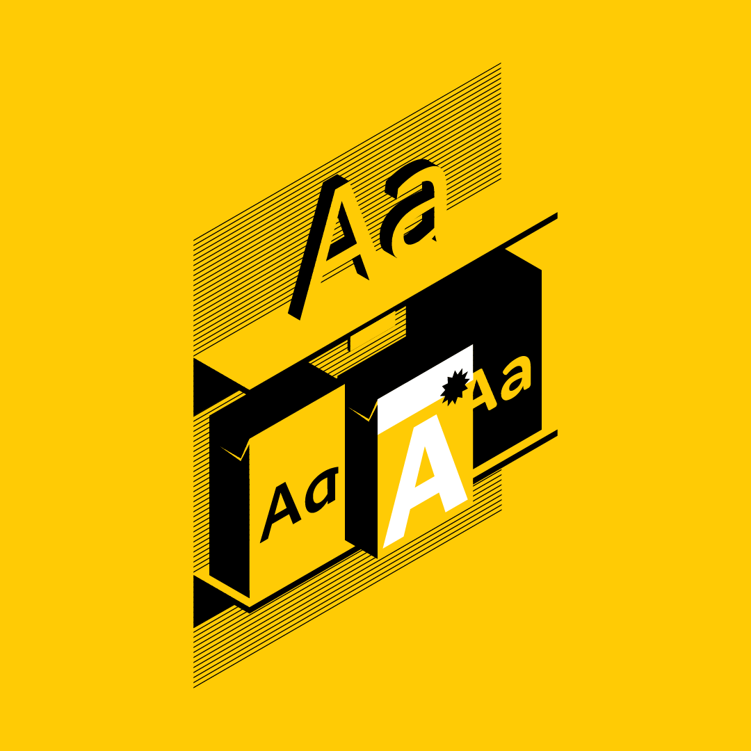 A inspiração vem da gestalt de forma e contra-forma, princípio fundamental no desenho de tipografia. O ângulo de 30 graus dos Fragmentos aparece na isometria dos desenhos e como elemento gráfico de apoio.