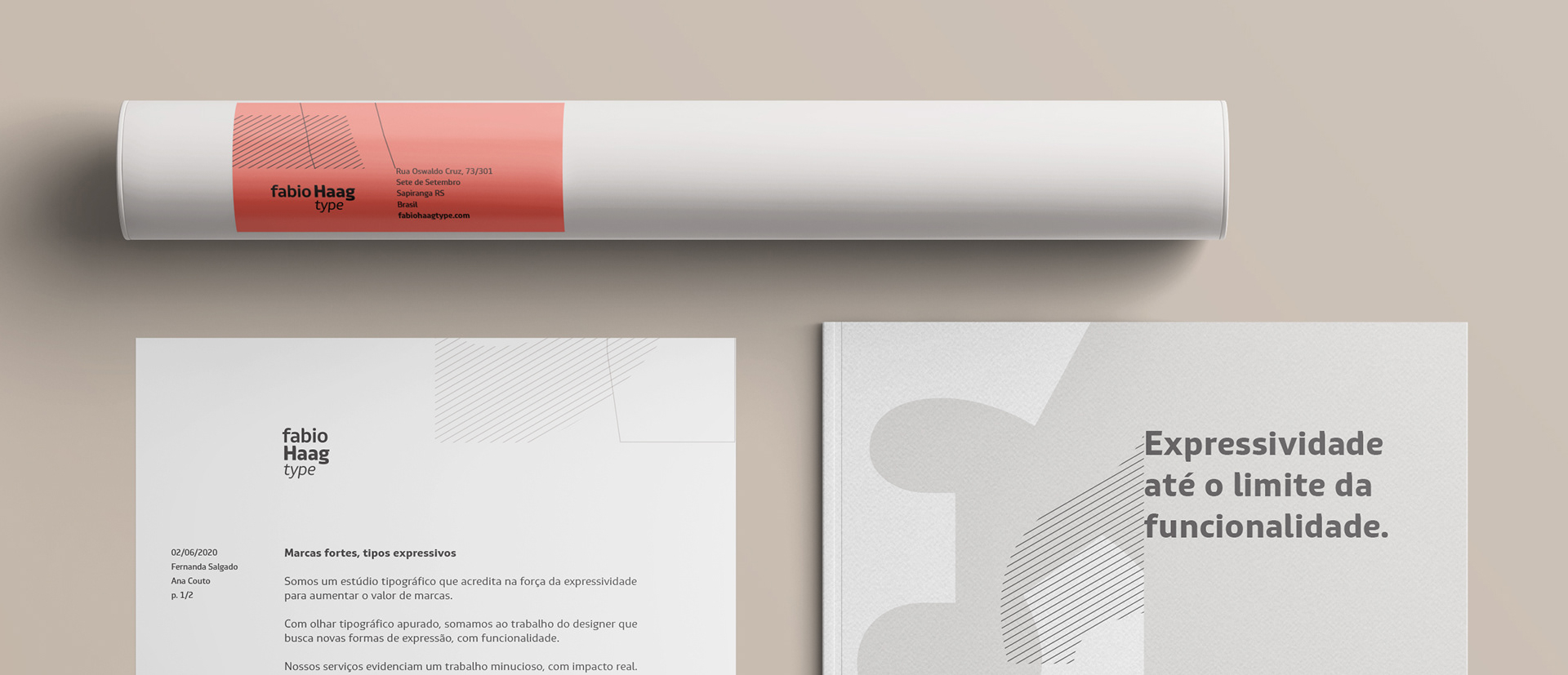 Depois de alguns anos atuando como Fabio Haag Type e trabalhando em vários dos principais projetos de marca do Brasil, era hora de se reposicionar e se preparar, agora como estúdio criativo, para dar passos maiores. Para esse novo momento, fui convidado a projetar um novo universo visual que fornecesse ao Haag e sua equipe elementos que compõem um sistema de identidade flexível e contundente, alternando entre momentos de absoluta sobriedade, para dar destaque aos tipos desenhados, e personalidade gráfica memorável para comunicar os valores da marca.